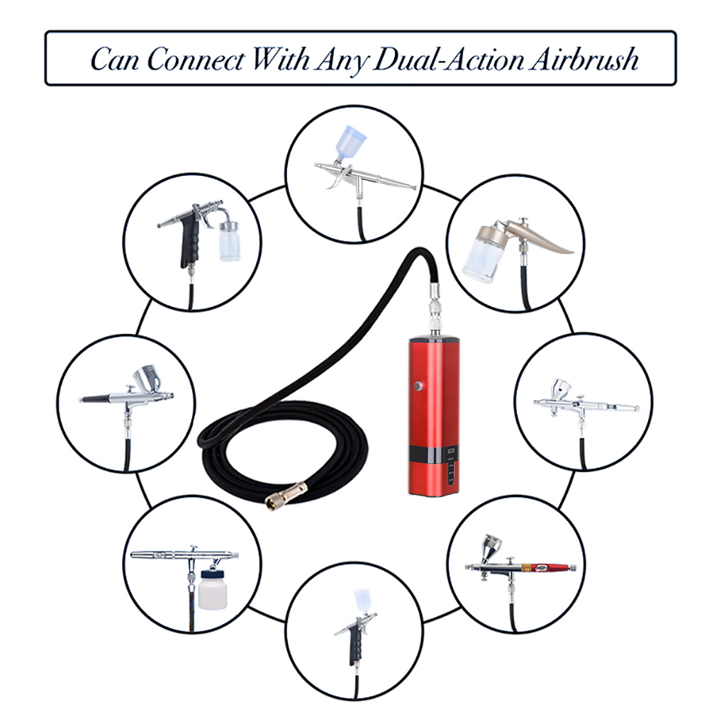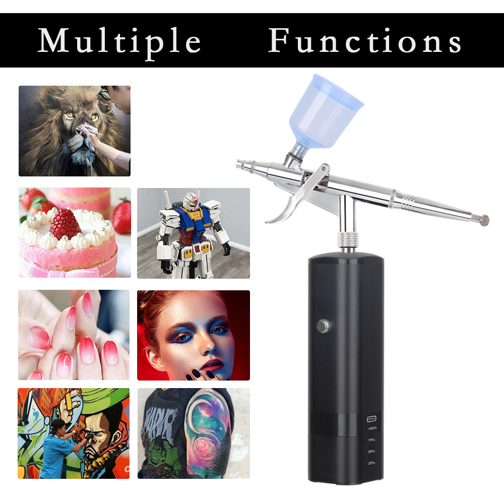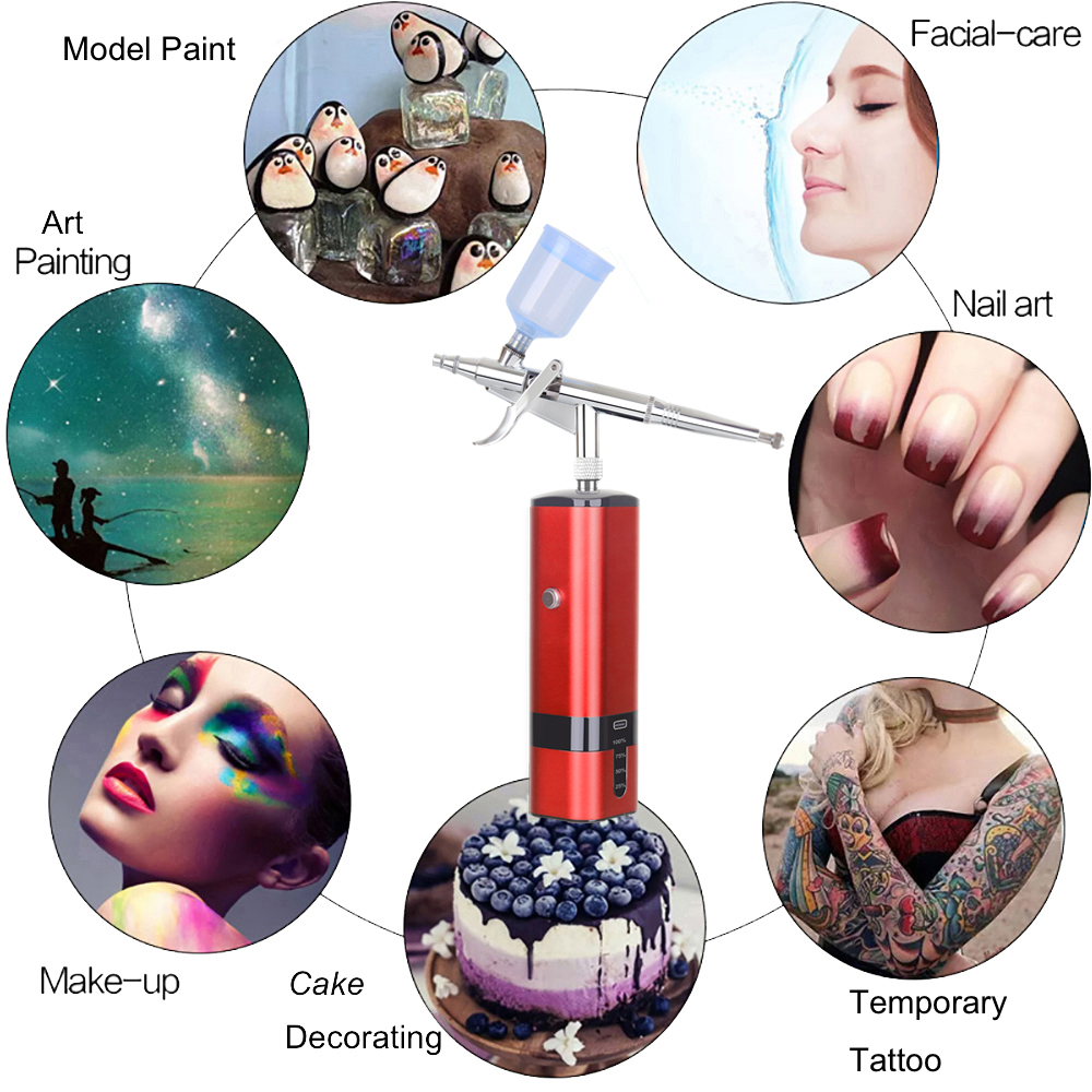 Portable cordless airbrush kit can be used for cake decorating, makeup, nails design, tattoo, model painting, art painting, handicraft and so on.