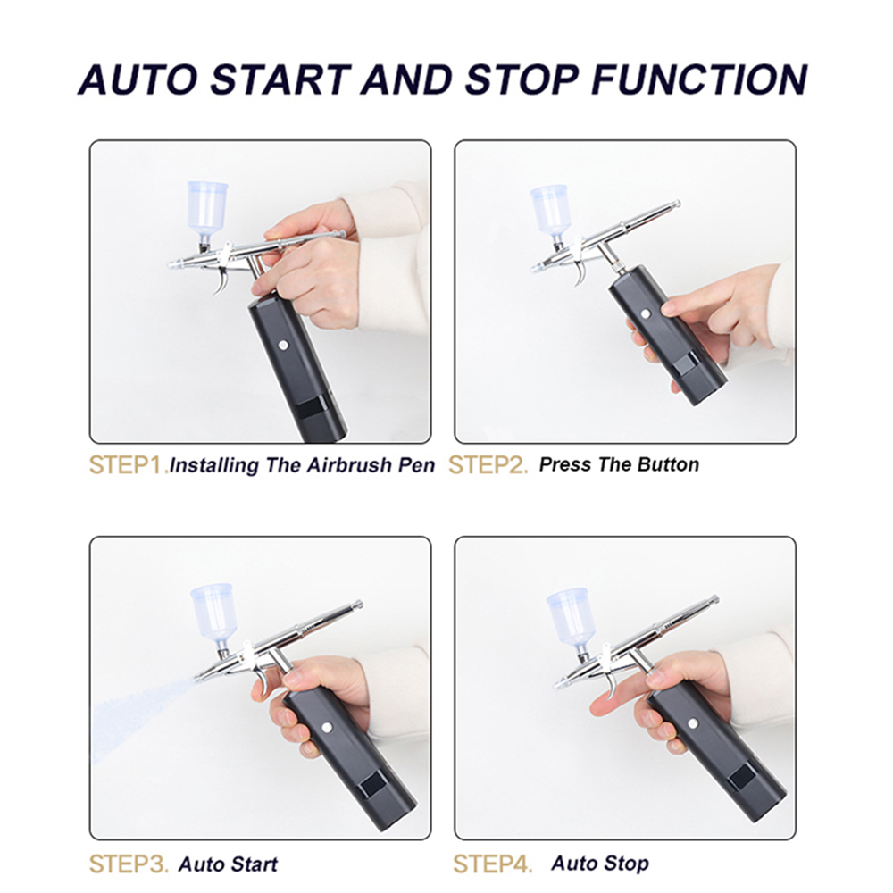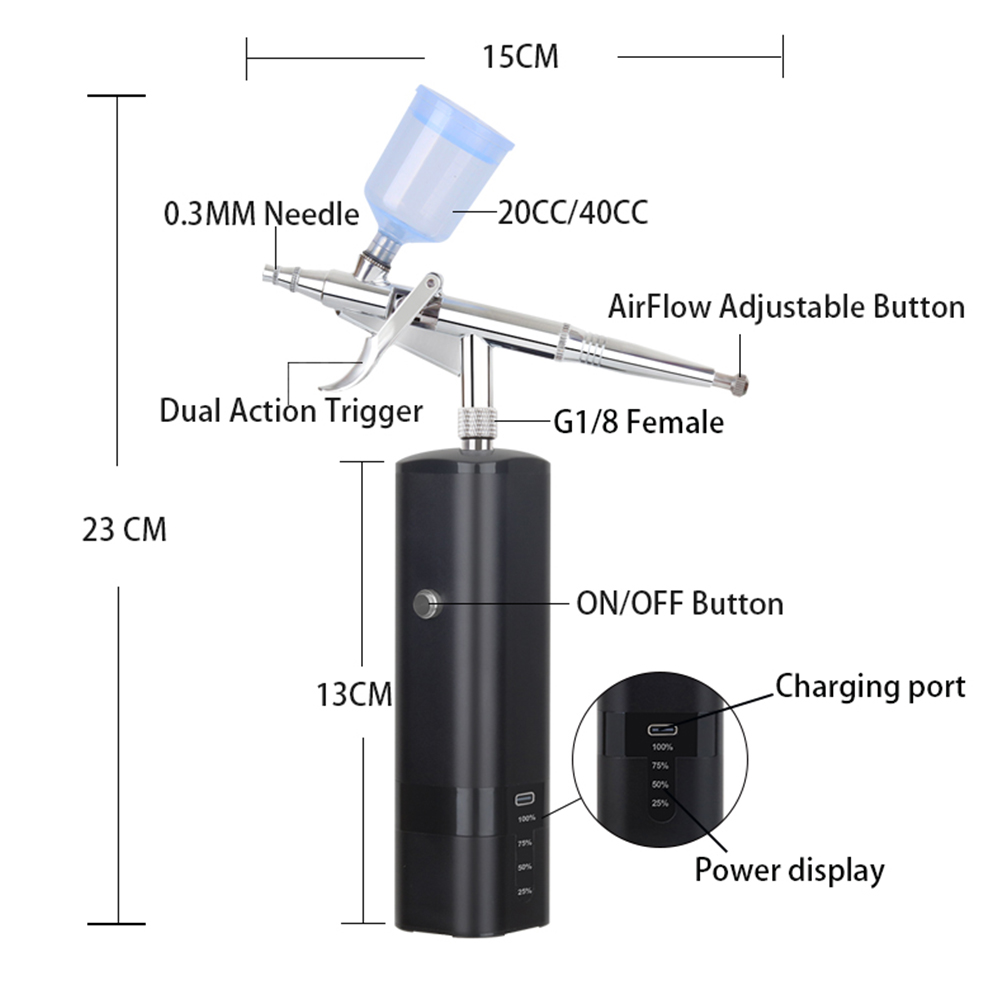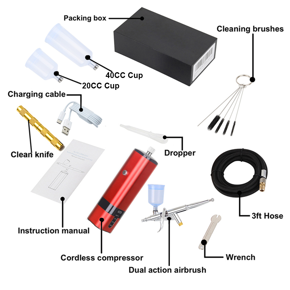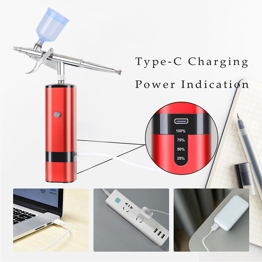 Portable cordless airbrush kit can be used for cake decorating, makeup, nails design, tattoo, model painting, art painting, handicraft and so on.