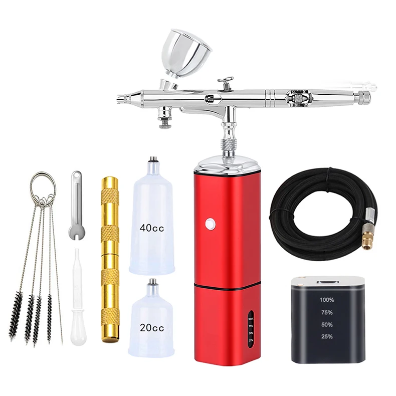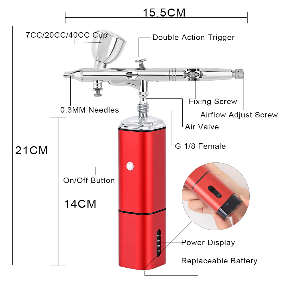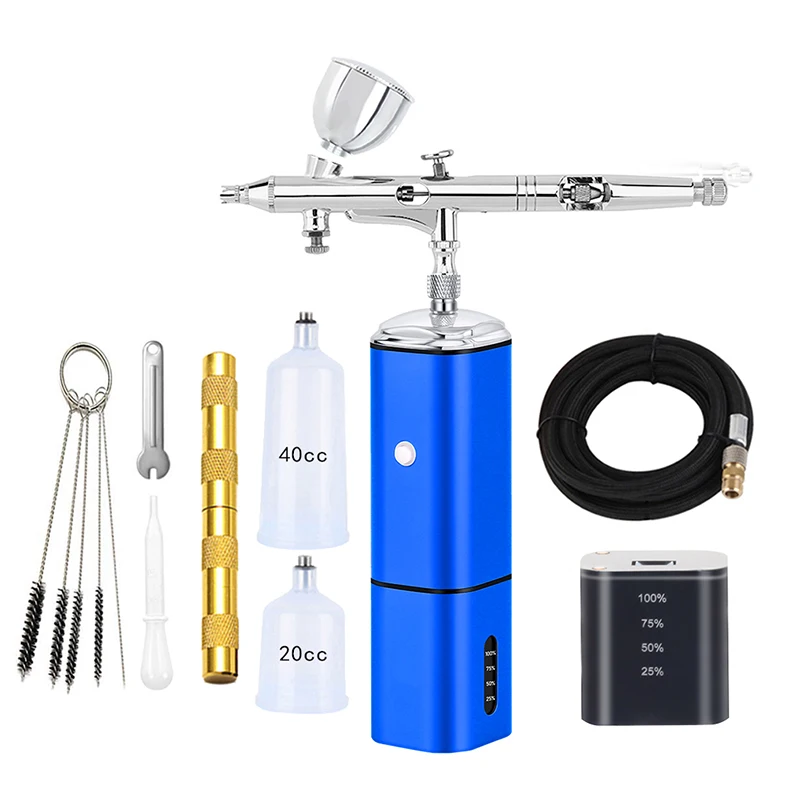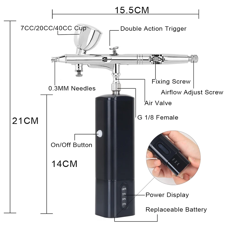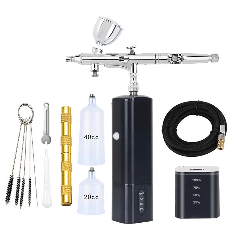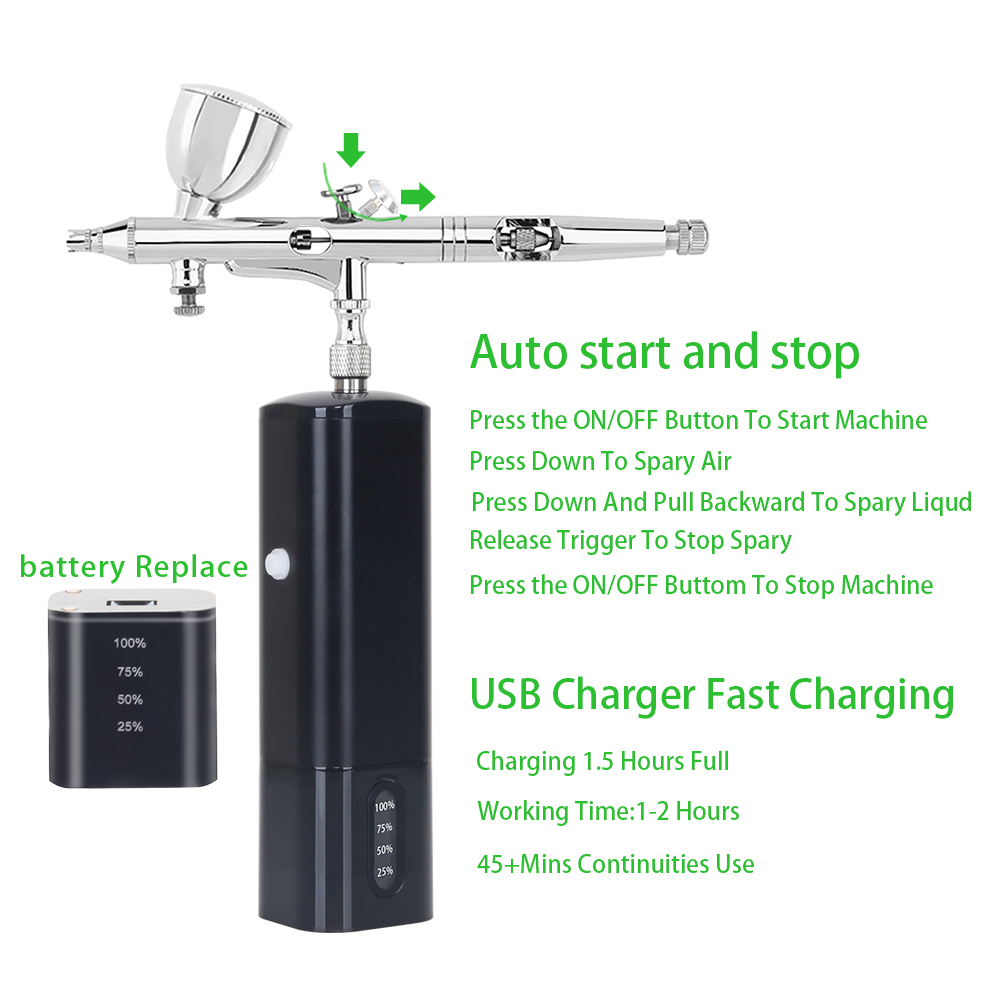 Portable cordless airbrush kit can be used for cake decorating, makeup, nails design, tattoo, model painting, art painting, handicraft and so on.
