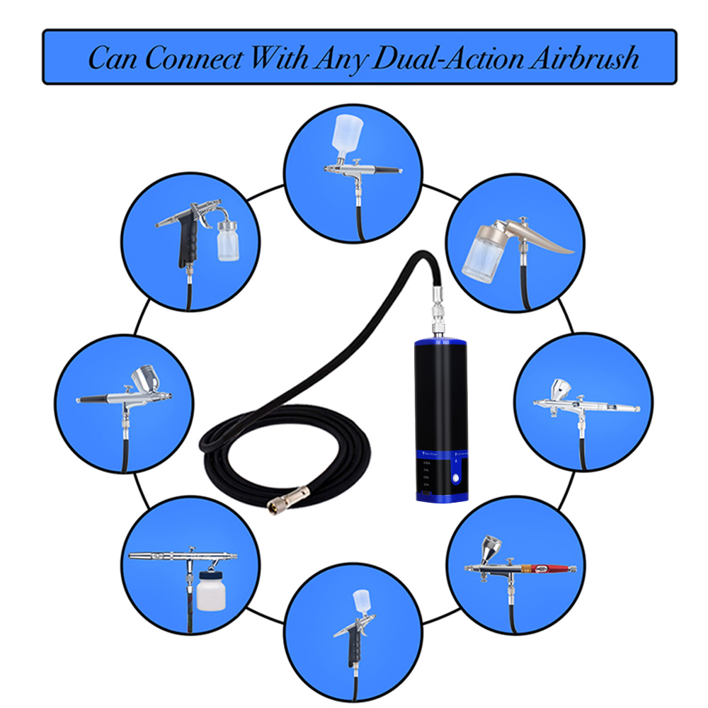 Our cordless airbrush compressor can be use with all the dual action airbrush gun which you love