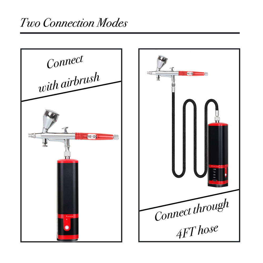 Our cordless airbrush compressor can be use with all the dual action airbrush gun which you love