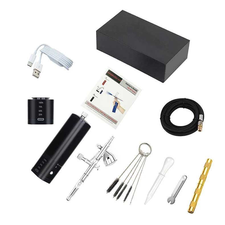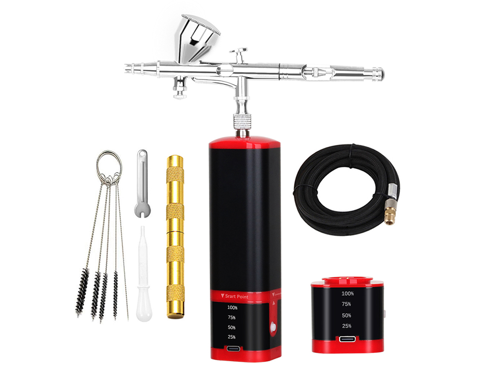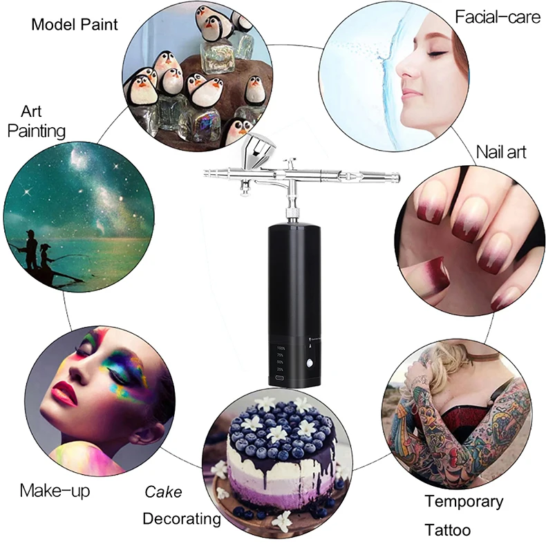 airbrush painting kit can be placed in your backpack or pocket,it's light weight and easy to carry around.Portable cordless airbrush kit can be used for cake decorating,makeup,nails design,tattoo,model painting,art painting,handicraft and so on. The airbrush must be cleaned thoroughly after each use to avoid nozzle clogging or uneven spraying.