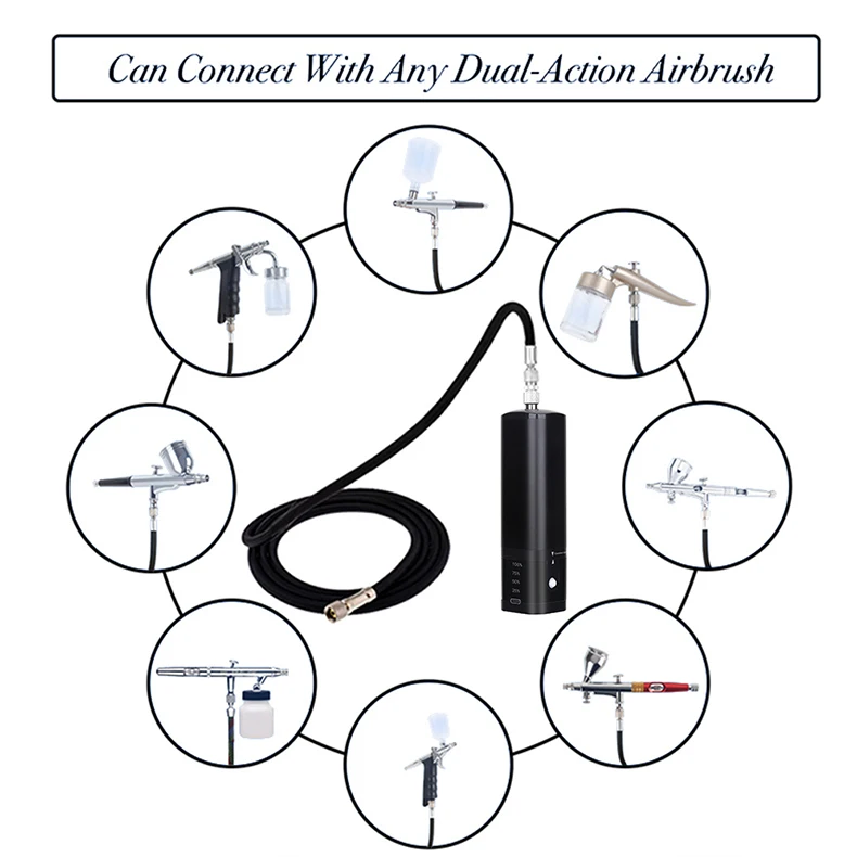 Our cordless airbrush compressor can be use with all the dual action airbrush gun which you love