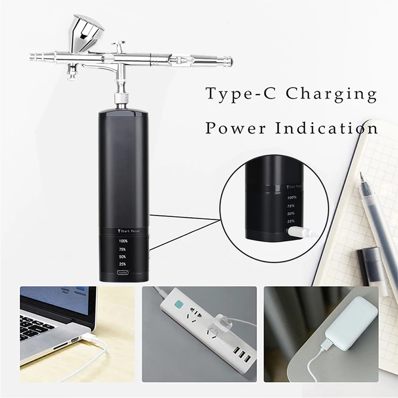 Professional Wireless Mini Airbrush Kit Portable Compressor Auto Start Stop Type C Noiseless Super Quiet High Power Art Car Tool