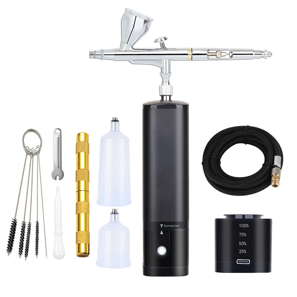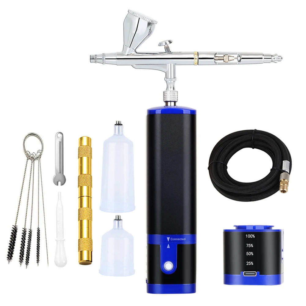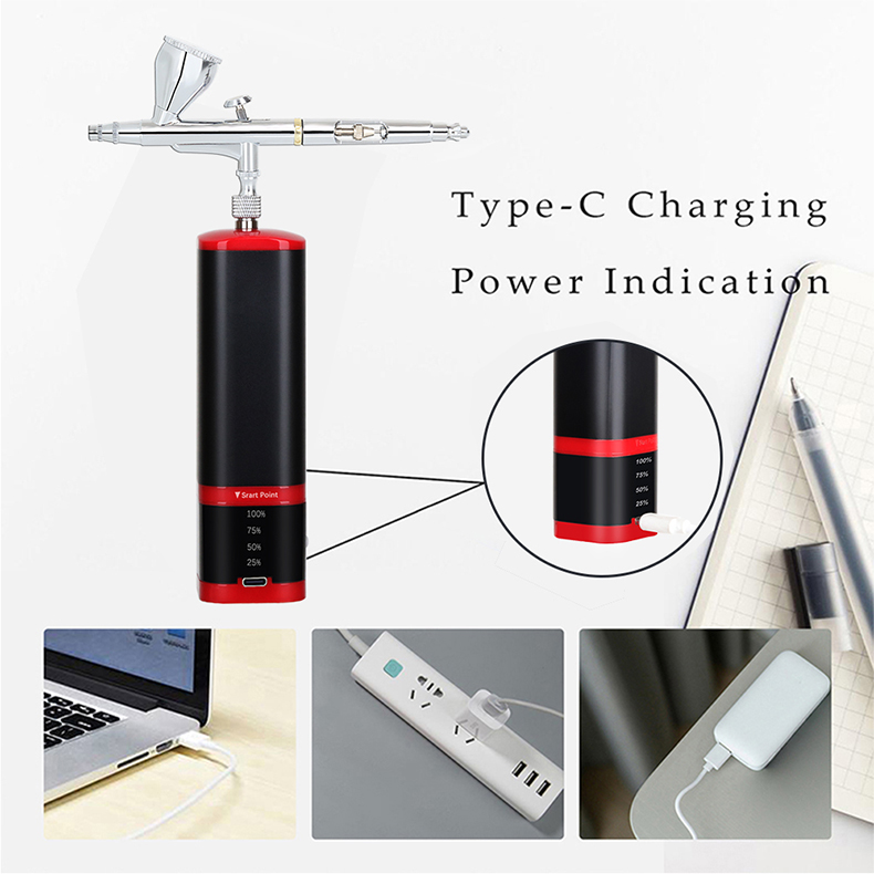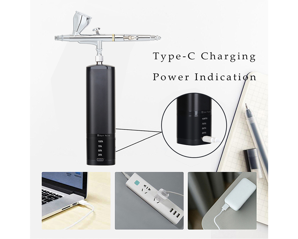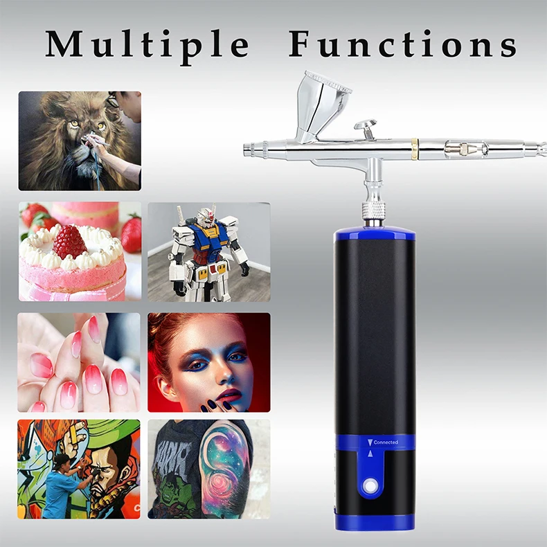 Portable cordless airbrush kit can be used for cake decorating, makeup, nails design, tattoo, model painting, art painting, handicraft and so on.