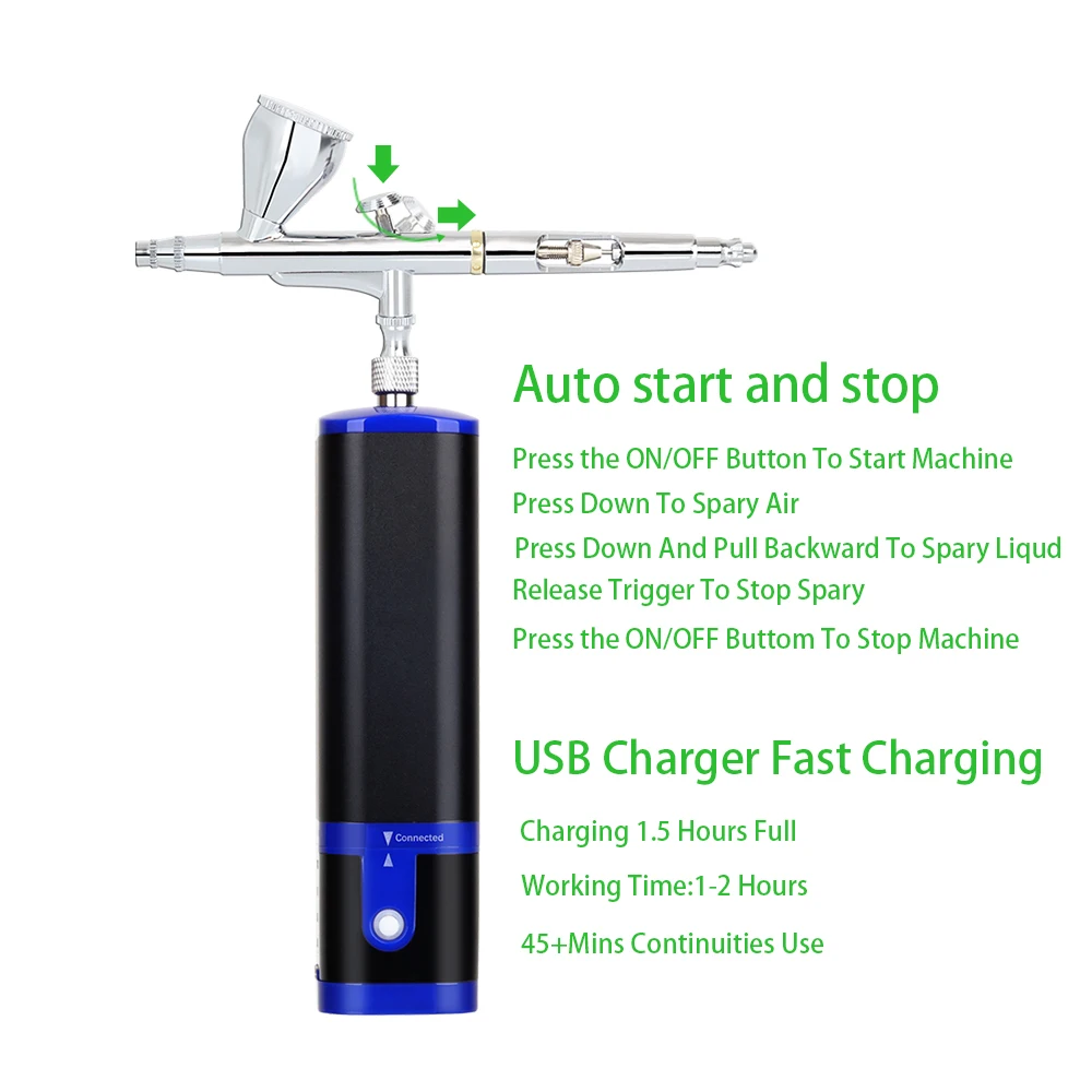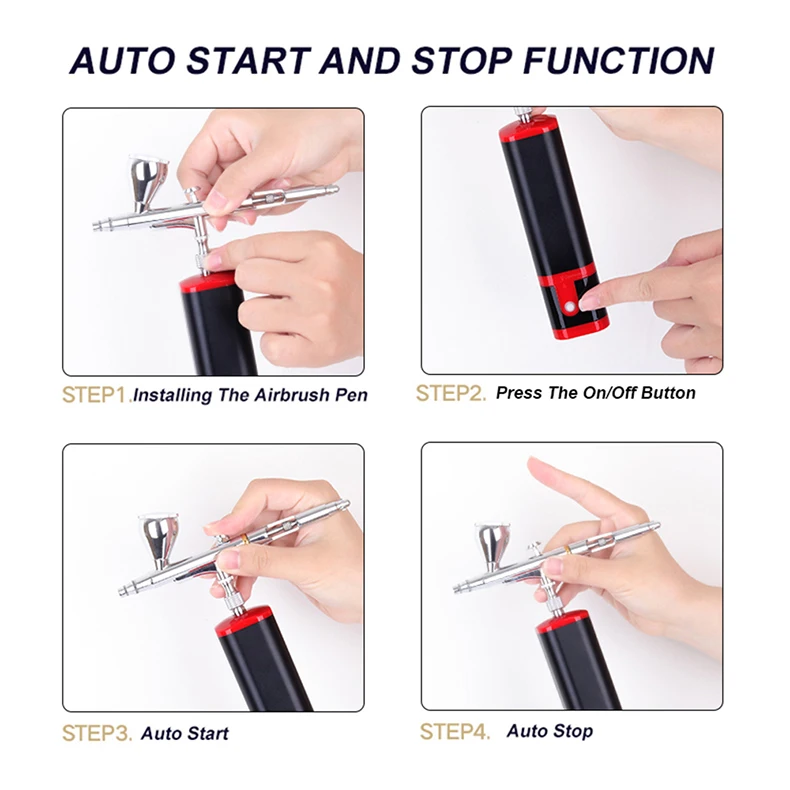Portable Airbrush Kit Compressor Auto Start Stop Wireless Powerful Replace Battery Easy Use Noiseless Customized Super Works