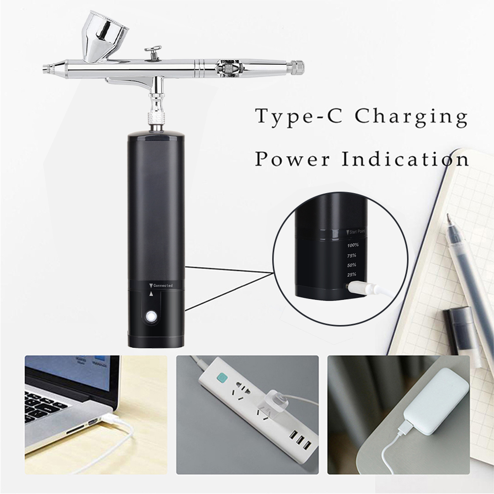 Best Quality Cordless Airbrush Kit with Compressor High Pressure Replace Battery Power Display Regulator Air Brush Spray Gun