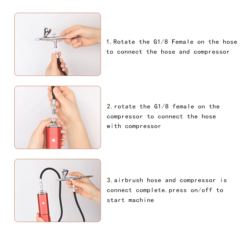Can connect with almost all kinds of dual action airbrush pens through the below braided hose.