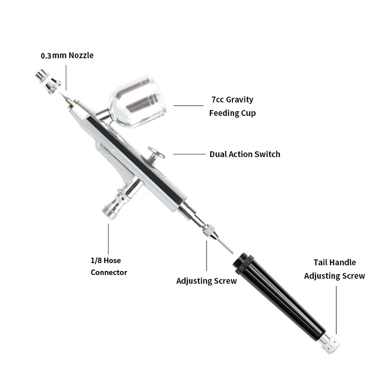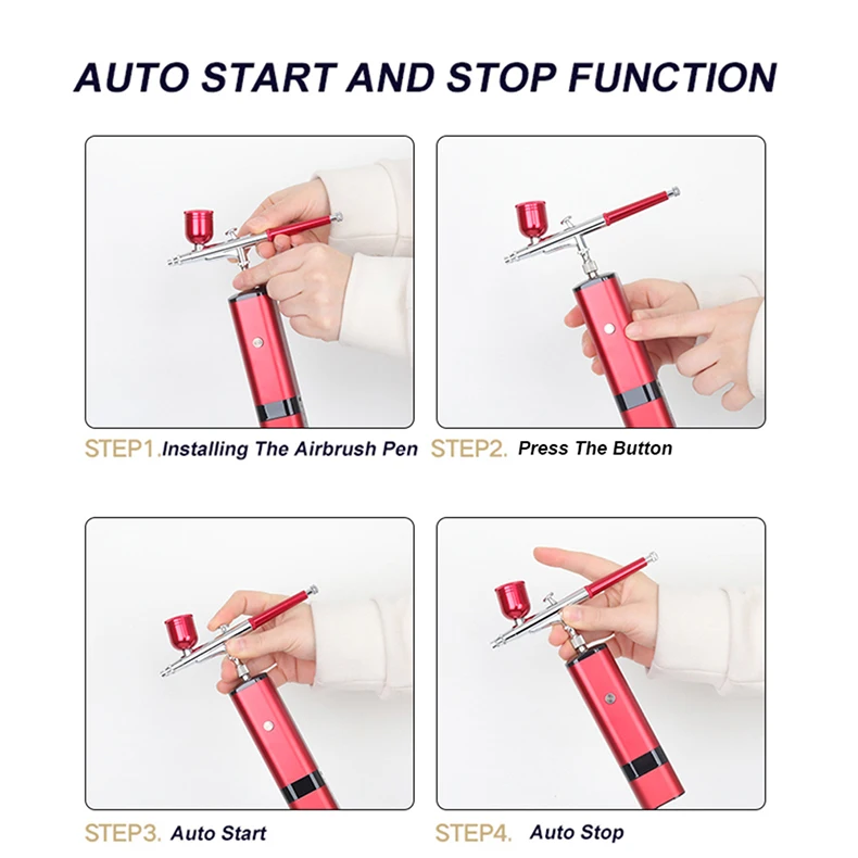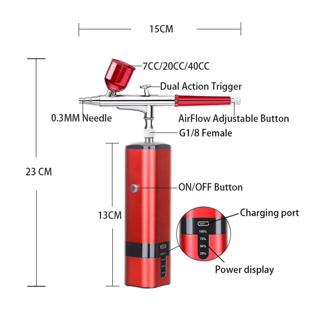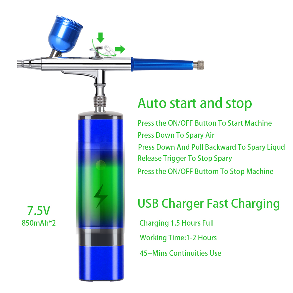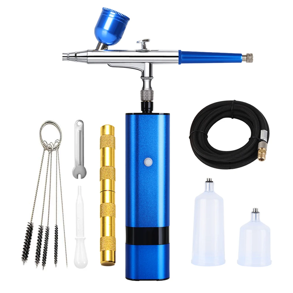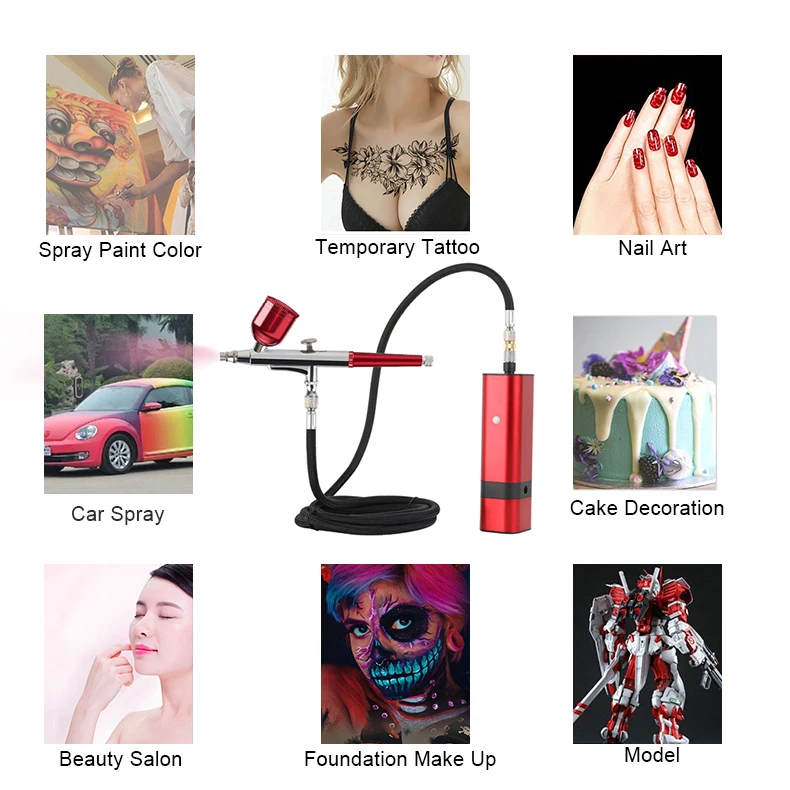 airbrush painting kit can be placed in your backpack or pocket,it's light weight and easy to carry around.Portable cordless airbrush kit can be used for cake decorating,makeup,nails design,tattoo,model painting,art painting,handicraft and so on. The airbrush must be cleaned thoroughly after each use to avoid nozzle clogging or uneven spraying.