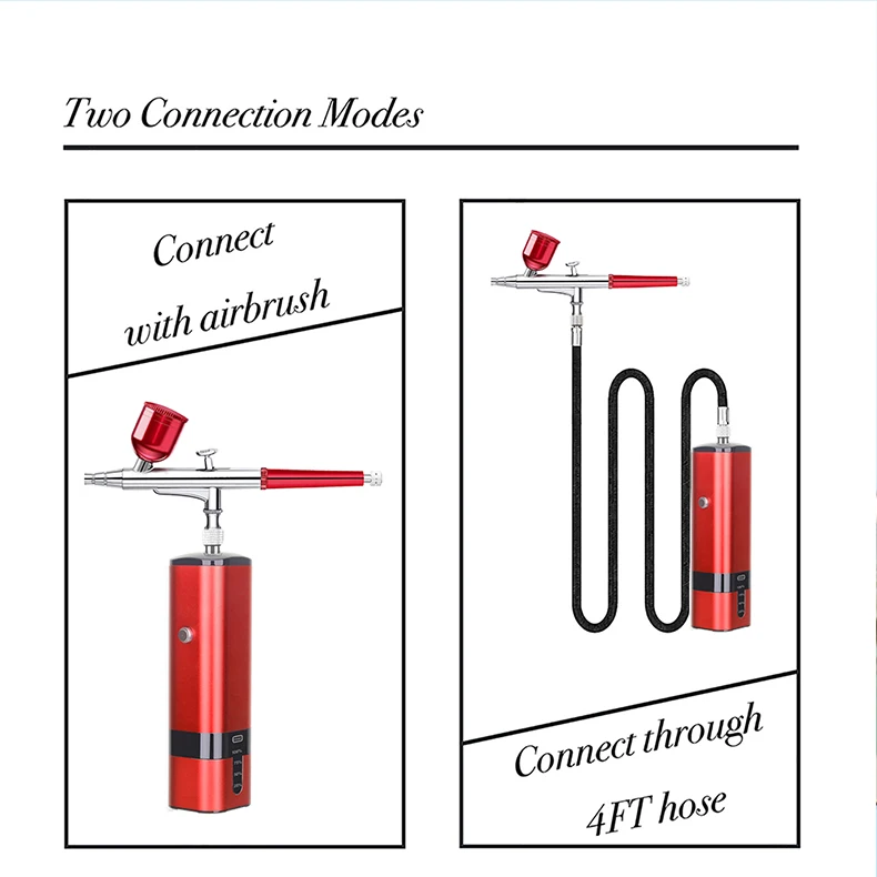 Our cordless airbrush compressor can be use with all the dual action airbrush gun which you love
