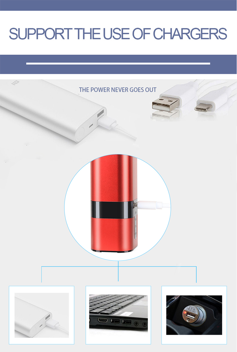Just like a mobile phone, after a single charge, it can be used anywhere, even without a power supply. Fully charged, can be used for 30-50 minutes. With USB charging cable, you can use computer charging, charger charging, or power bank charging.