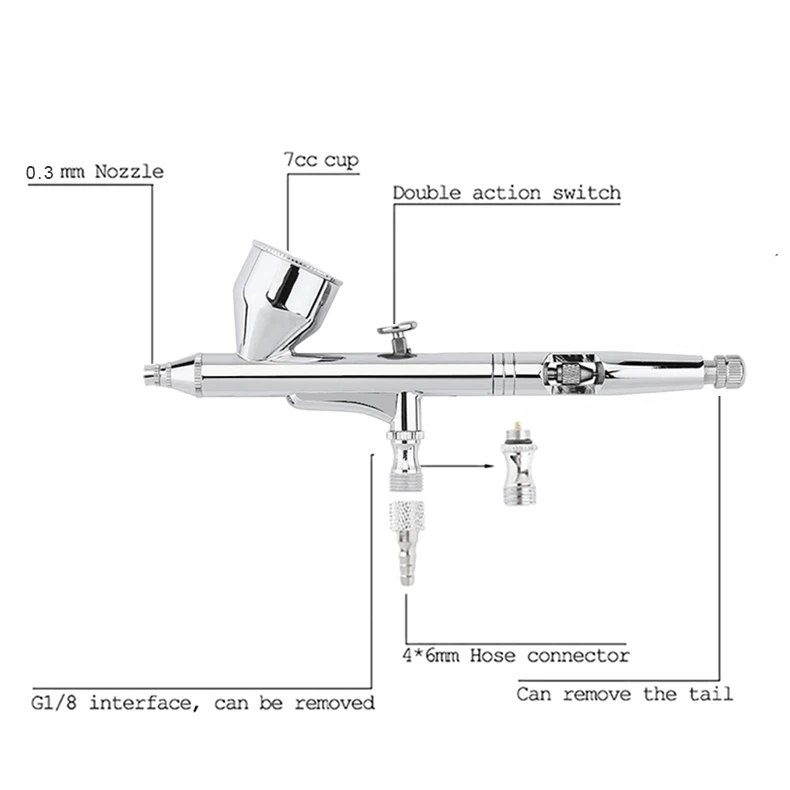 Dual-action Trigger Airbrush kits . It allows users to determine the quantity of air and fluid released with simply fingers' moves. Provides exceptional atomization and accurate spray control.