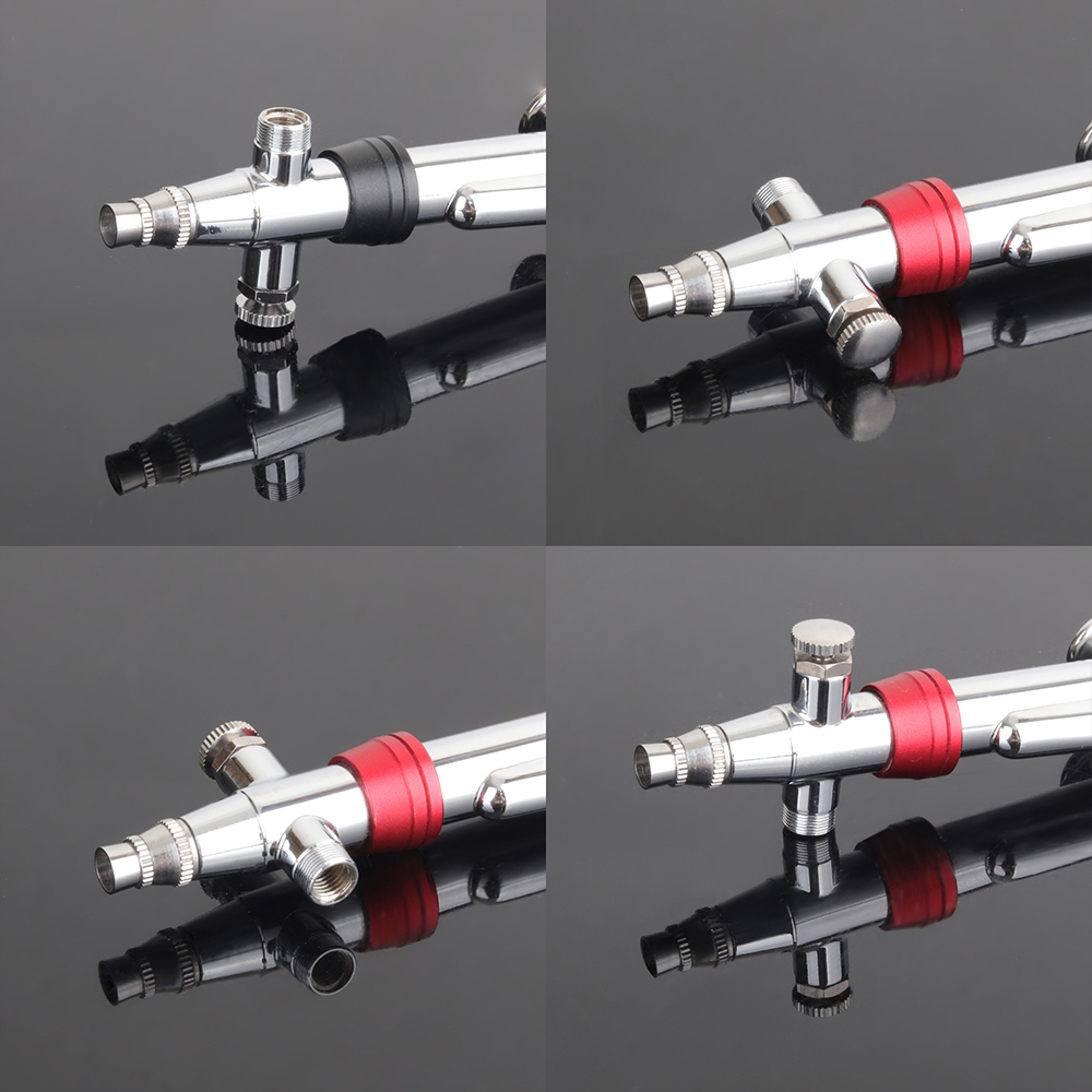 A rotating airbrush head allows a cup to be placed in any position,such as on either side,underneath or above(gravity).This gives you more options for gravity feeding(cup on top),siphon feeding(cup on bottom),or side feeding(cup on the side),more convenient and suitable for all airbrush spray fields.